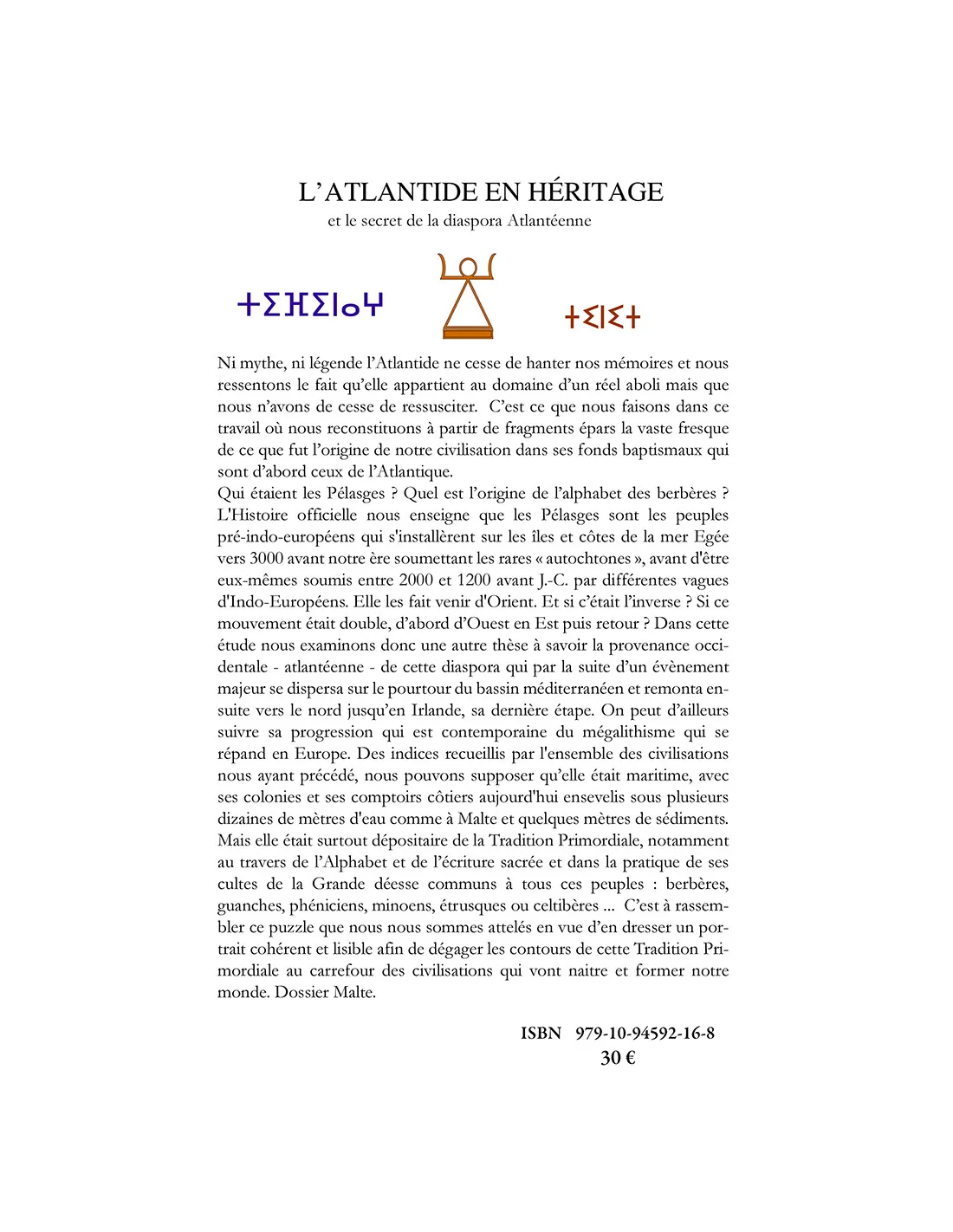 C’est à rassembler ce puzzle que nous nous sommes attelés en vue d’en dresser un portrait cohérent et lisible afin de dégager les contours de cette Tradition Primordiale au carrefour des civilisations qui vont naitre et former notre monde. ISBN 979-10-94592-16-8 330 Pages, format 15 x 21
